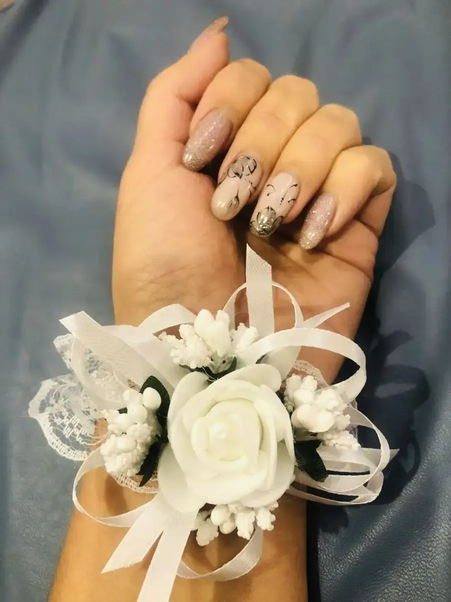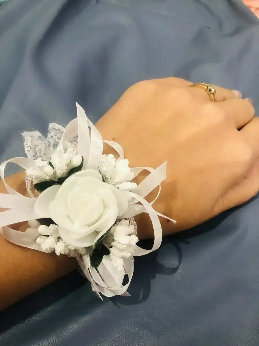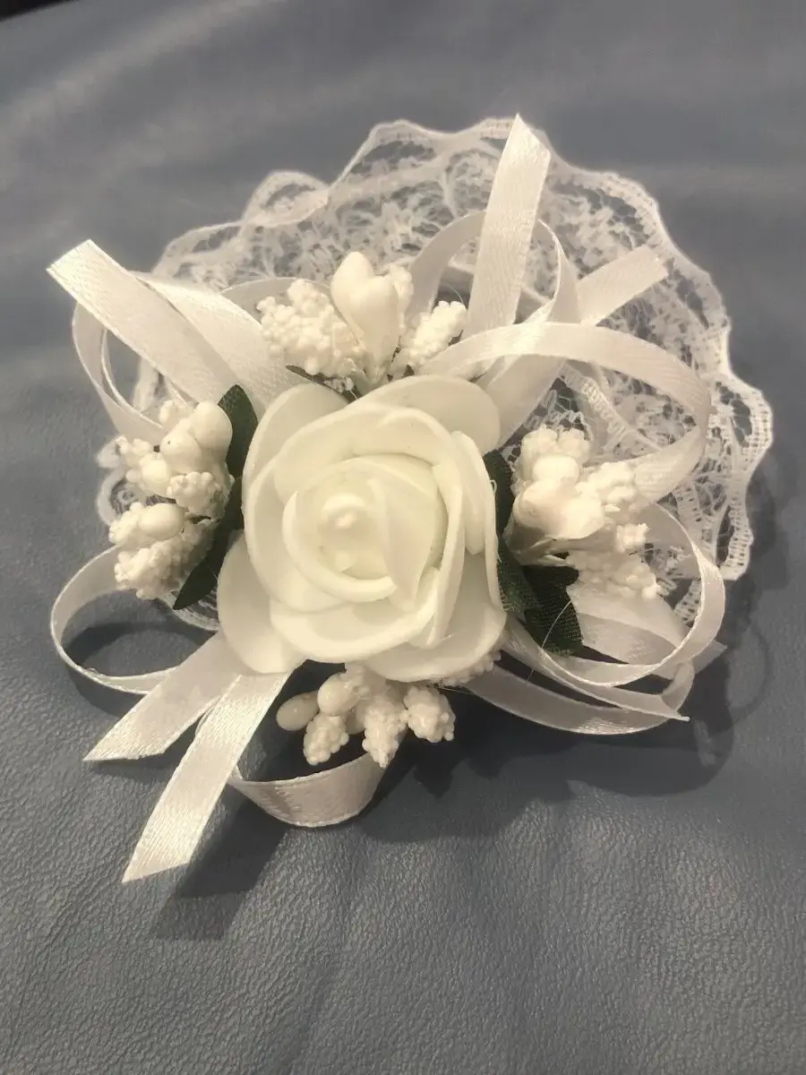 Браслет подружки невесты или свидетельницы на свадьбу ручной работы изготовлен из кружева и атласных лент.Изящной латексной розы и вставок веточек растений.Браслет одевается на руку и держится на руке за счет резинки.Сейчас очень актуально делать стилистическую свадьбу.Поэтому если вы всем подружкам одените одинаковые браслеты это только подчеркнет ваш стиль свадьбы и украсит фото и пространство.Браслет универсальный на любую руку от 12-20 см.К каждому браслету можно подобрать бутоньерку для жениха или друзей жениха.