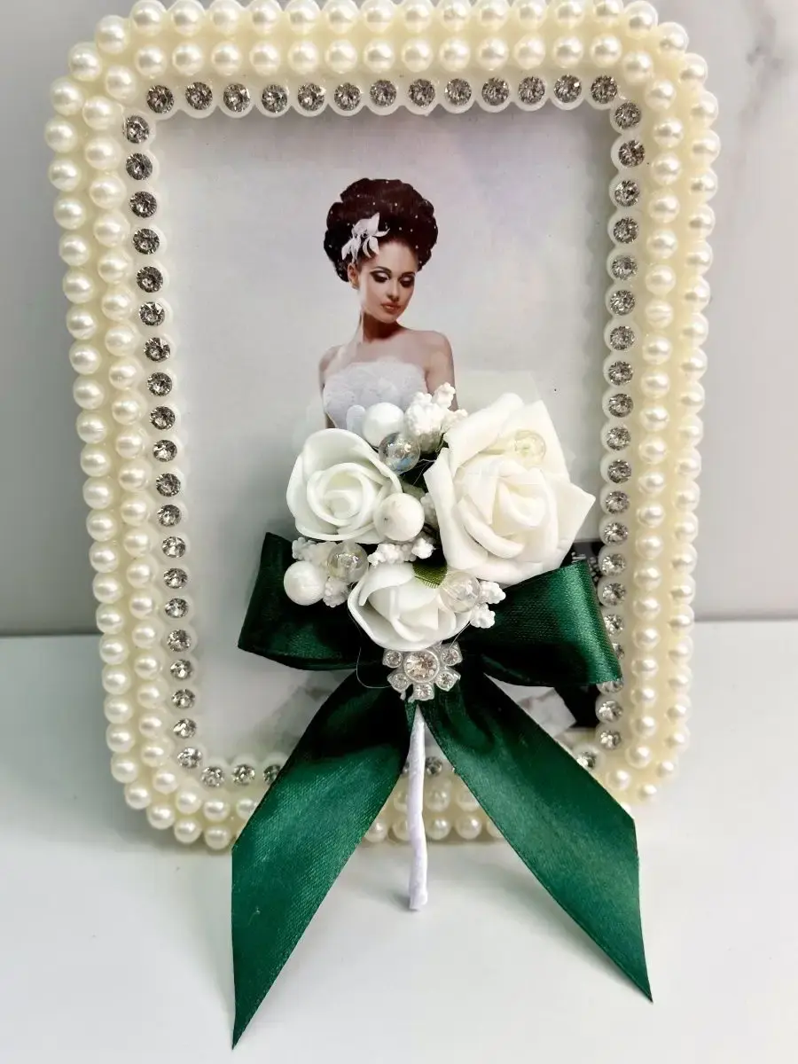 Бутоньерка это свадебный аксессуар для мужчин(жених или свидетель).Данный аксессуар должен подбираться под наряд невесты и ее букет,а также под общую стилистику свадьбы.Бутоньерка крепится в карман пиджака или на булавку или иголку.Каждая бутоньерка выполнена в ручную возможно немного отличаться от картинки.Диаметр 7 см и высота 11 см .
