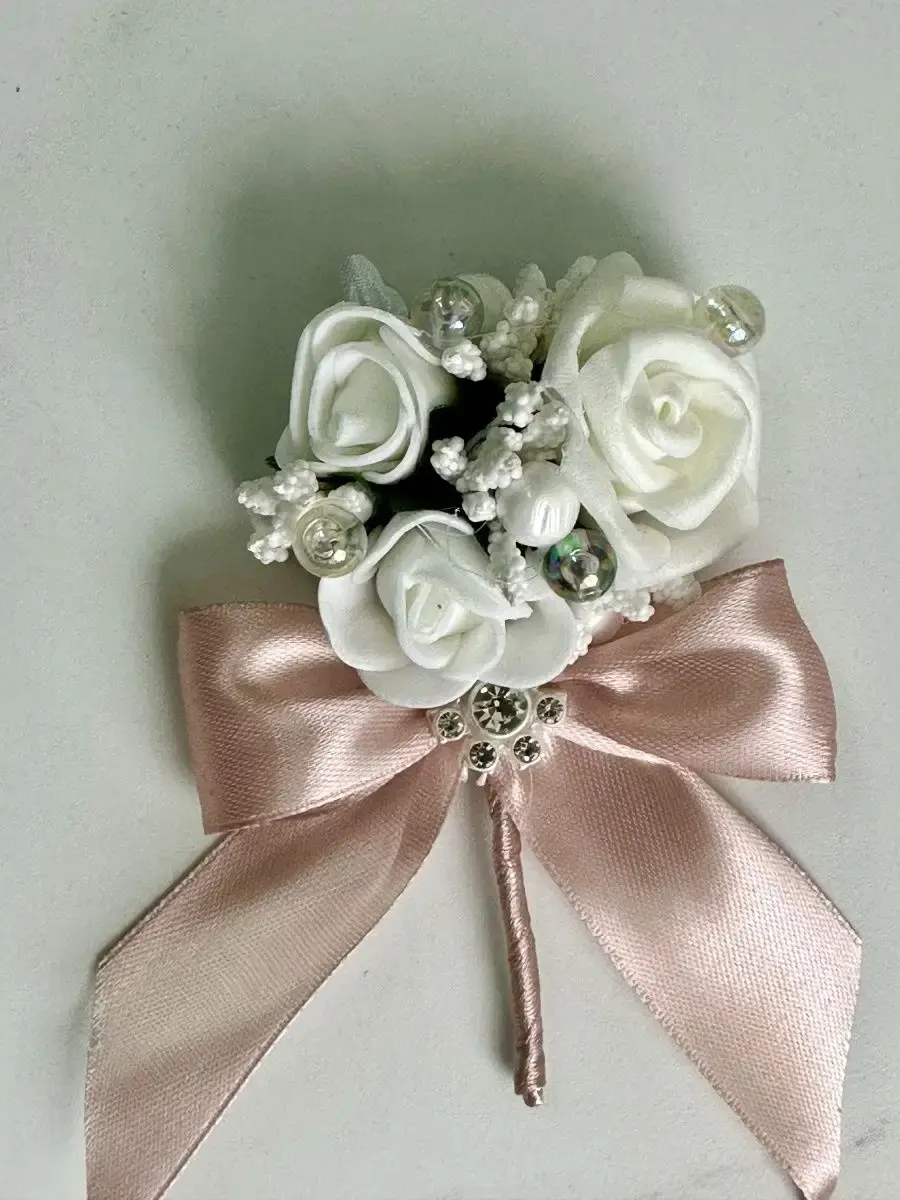 Бутоньерка это свадебный аксессуар для мужчин(жених или свидетель).Данный аксессуар должен подбираться под наряд невесты и ее букет,а также под общую стилистику свадьбы.Бутоньерка крепится в карман пиджака или на булавку или иголку.Каждая бутоньерка выполнена в ручную возможно немного отличаться от картинки.Диаметр 7 см и высота 11 см .