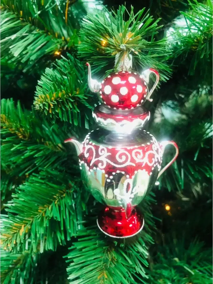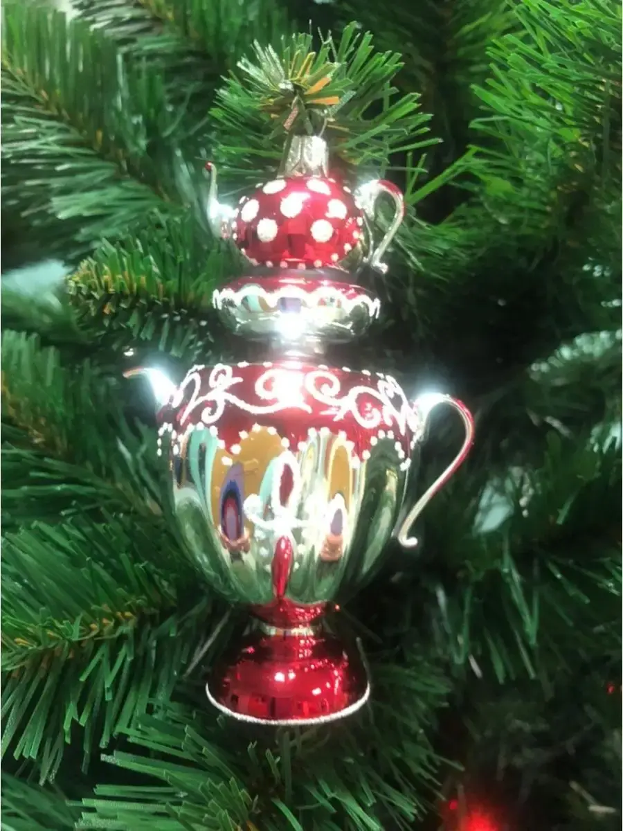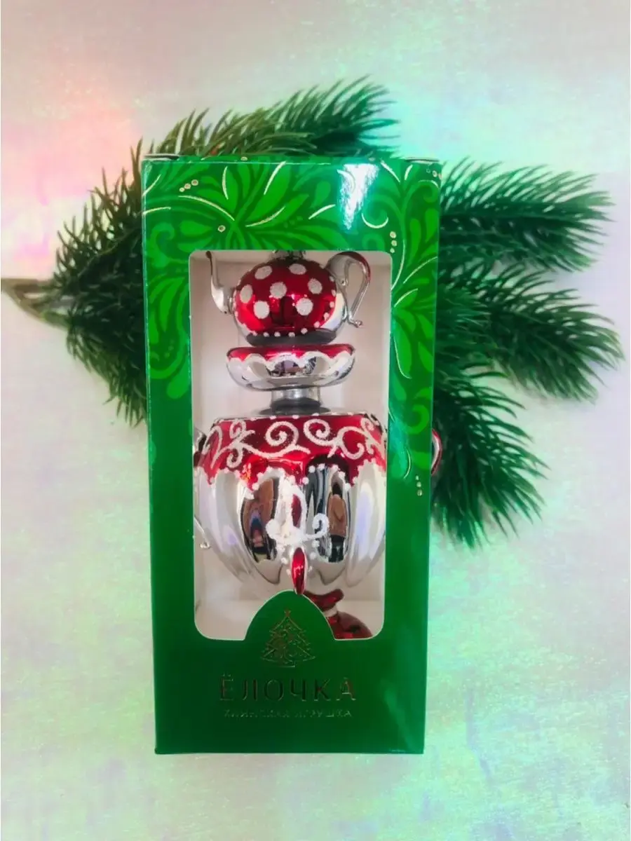 Елочная игрушка "Самоварчик" из стекла ручной росписи 12 см. высотой станет прекрасным подарком и украшением Вашего Новогоднего торжества.