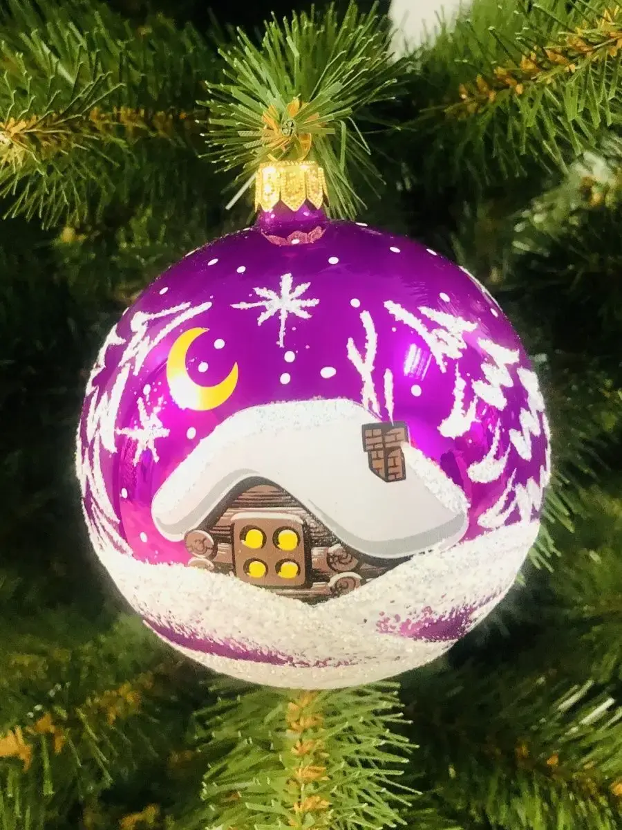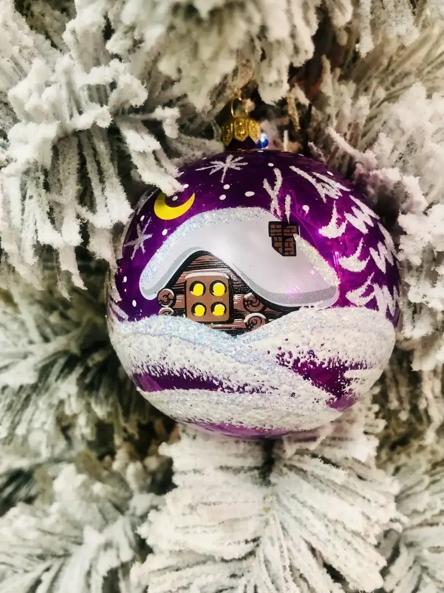 Елочный шар диаметром 85 мм ручной работы и ручной росписи. Данное елочное украшение будет красивым украшением для любой елки и дорогим подарком для любого.