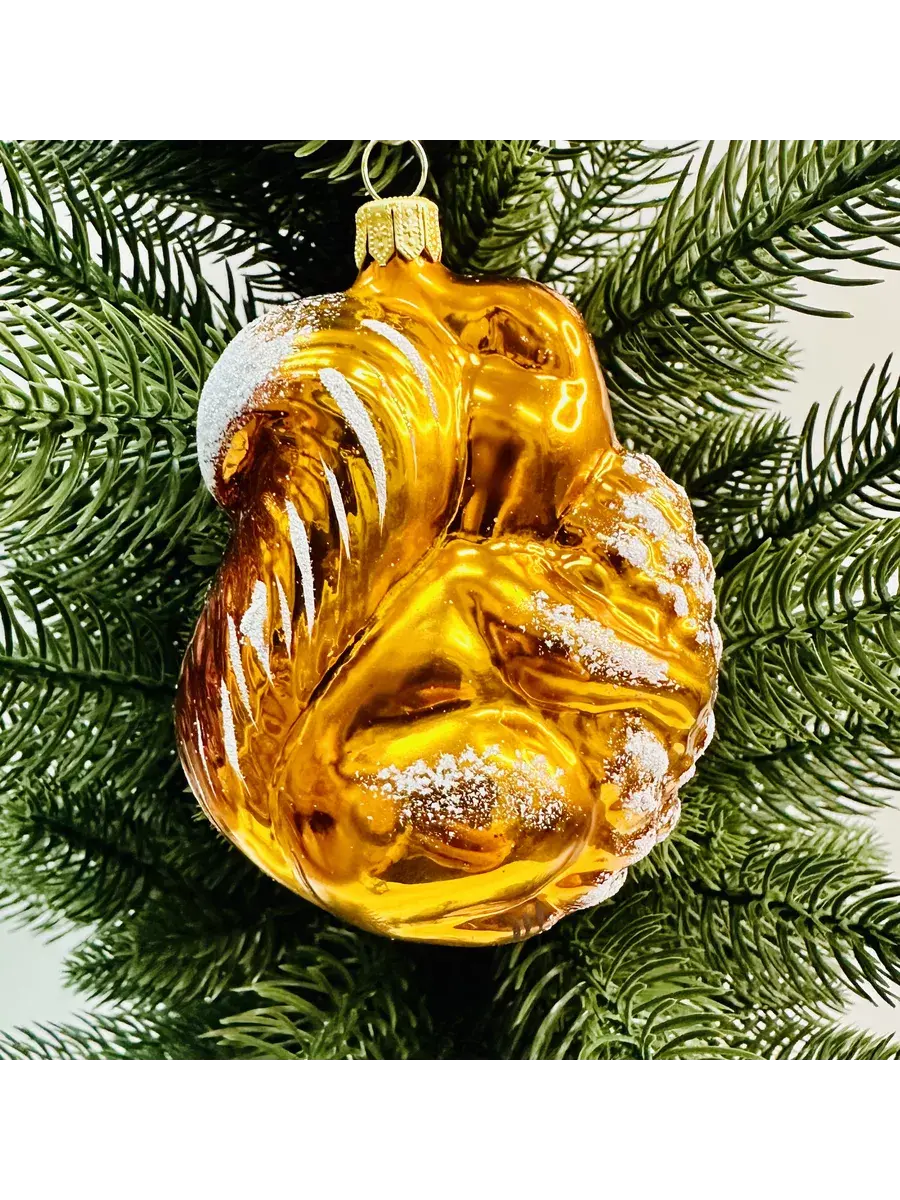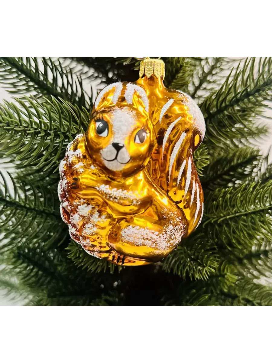 Елочная игрушка "Белочка" из стекла ручной росписи 9см. высотой станет прекрасным подарком и украшением Вашего Новогоднего торжества.