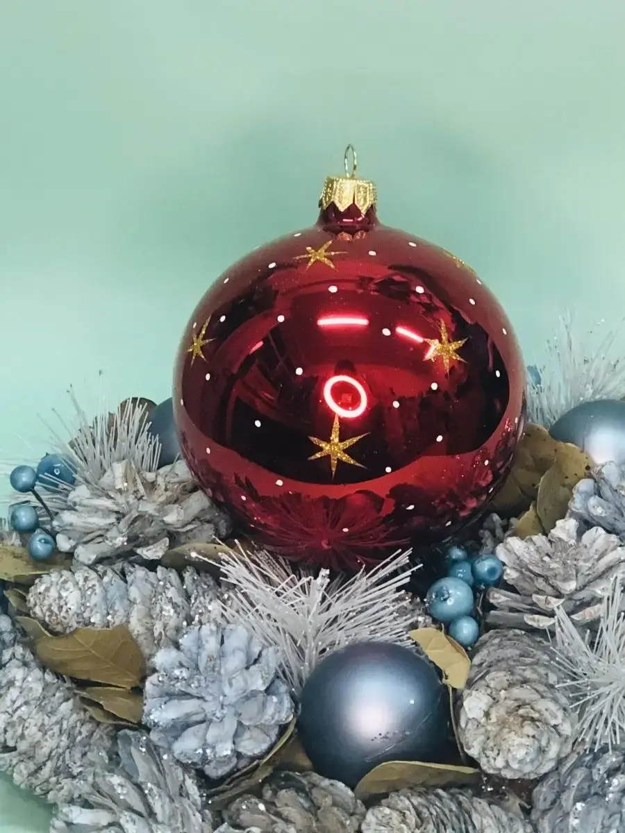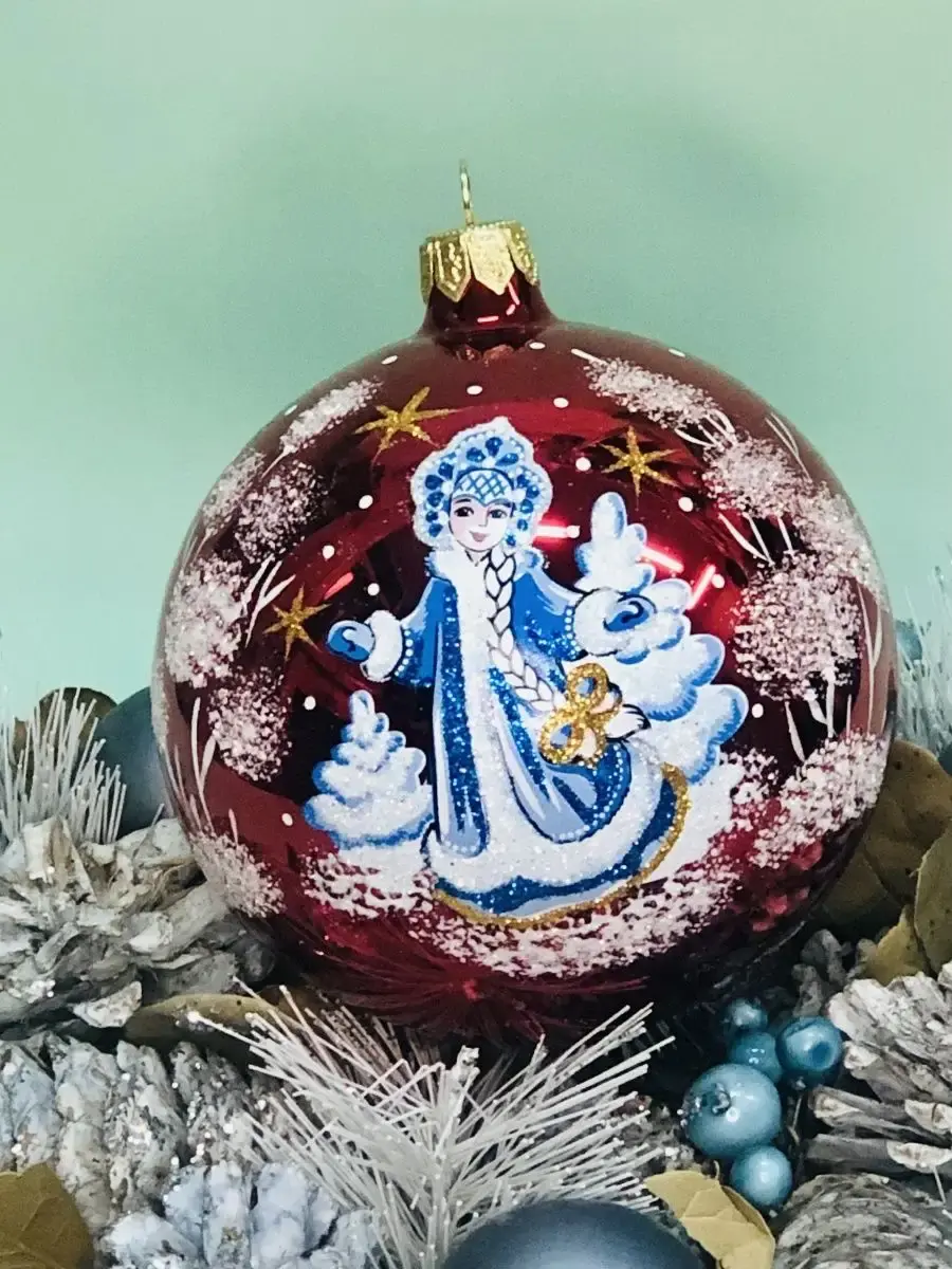 Шар ёлочный стеклянный декорированный. Елочный шар прекрасно выглядит на елке и также может быть замечательным сувенирным подарком во время Рождественских походов в гости. Елочная игрушка - символ Нового года и Рождества. Особенностью стеклянного елочного шара является художественная роспись. Яркие шары с красивыми рисунками помогут создать праздничное настроение. Упакован в подарочную упаковку.