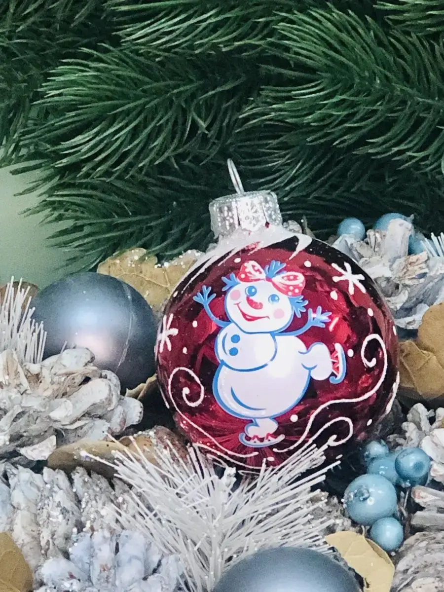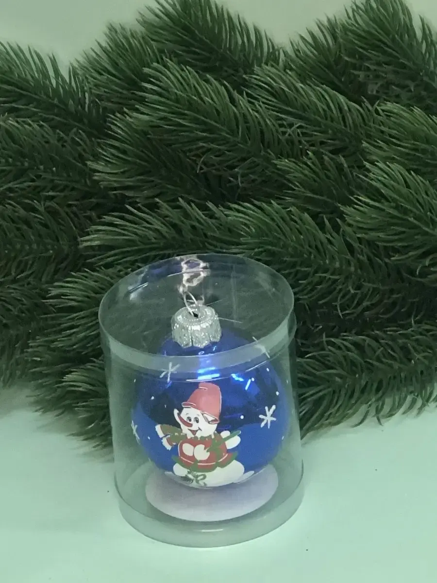 Шар ёлочный стеклянный декорированный. Елочный шар прекрасно выглядит на елке и также может быть замечательным сувенирным подарком во время Рождественских походов в гости. Елочная игрушка - символ Нового года и Рождества. Особенностью стеклянного елочного шара является художественная роспись. Яркие шары с красивыми рисунками помогут создать праздничное настроение. Упакован в подарочную упаковку.