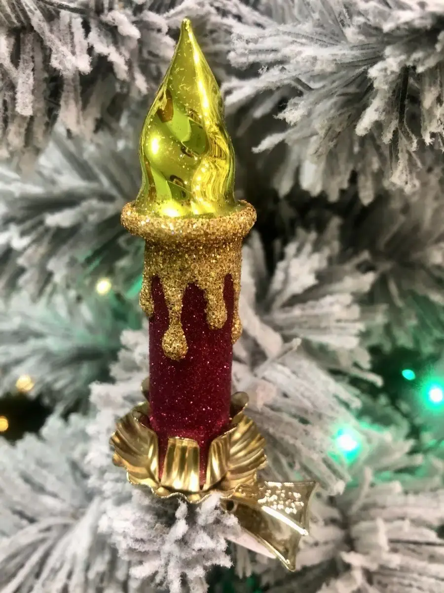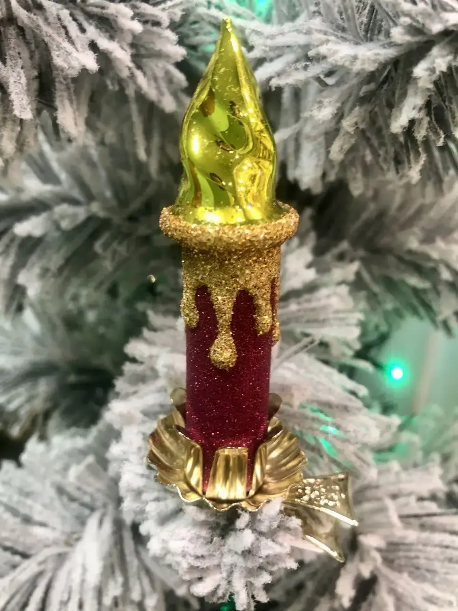 Елочная игрушка "Свеча" из стекла ручной росписи 9 см. высотой станет прекрасным подарком и украшением Вашего Новогоднего торжества.