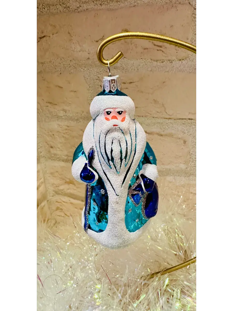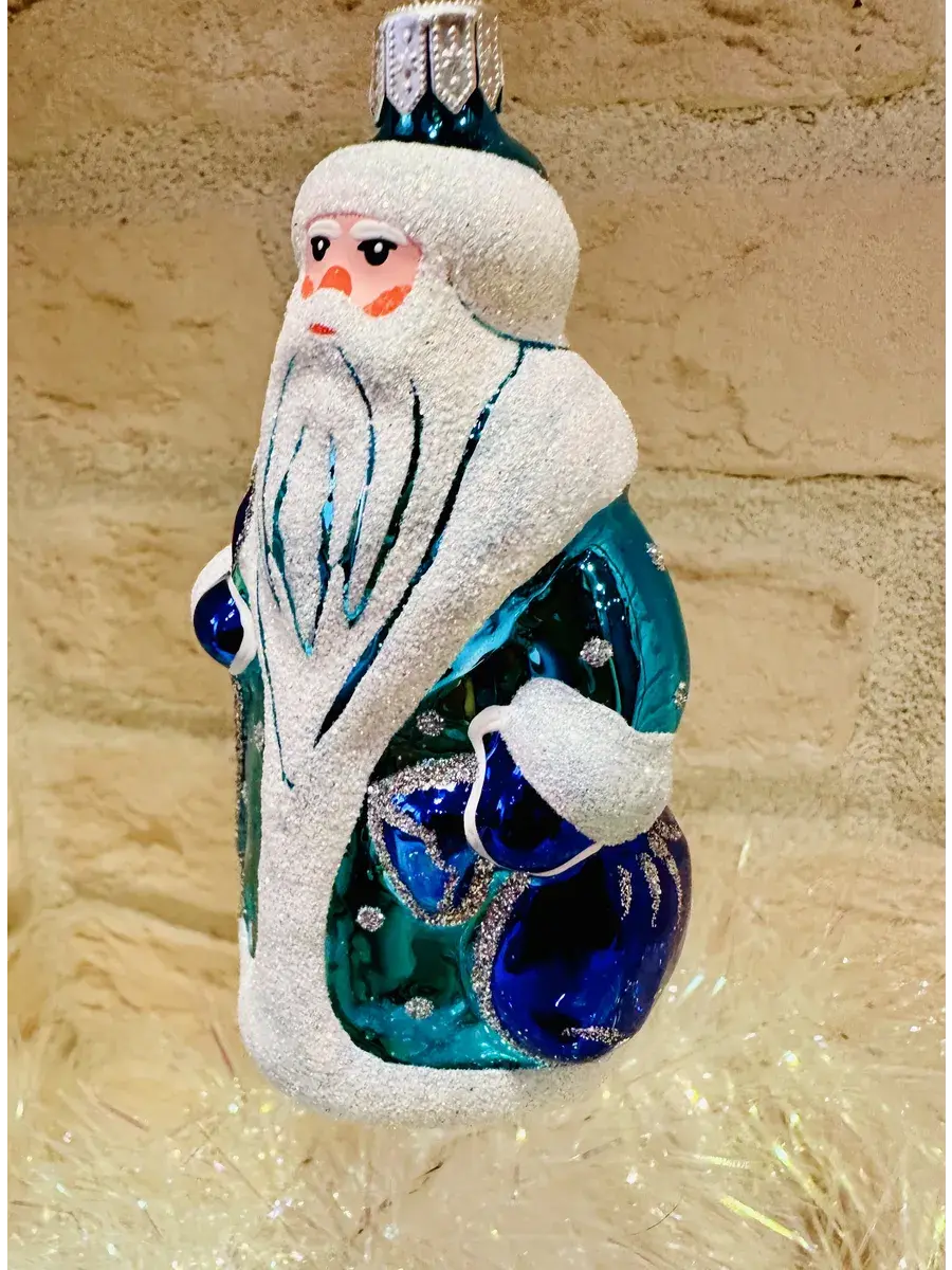 Елочная игрушка "Дед Мороз" из стекла ручной росписи 12 см. высотой станет прекрасным подарком и украшением Вашего Новогоднего торжества.