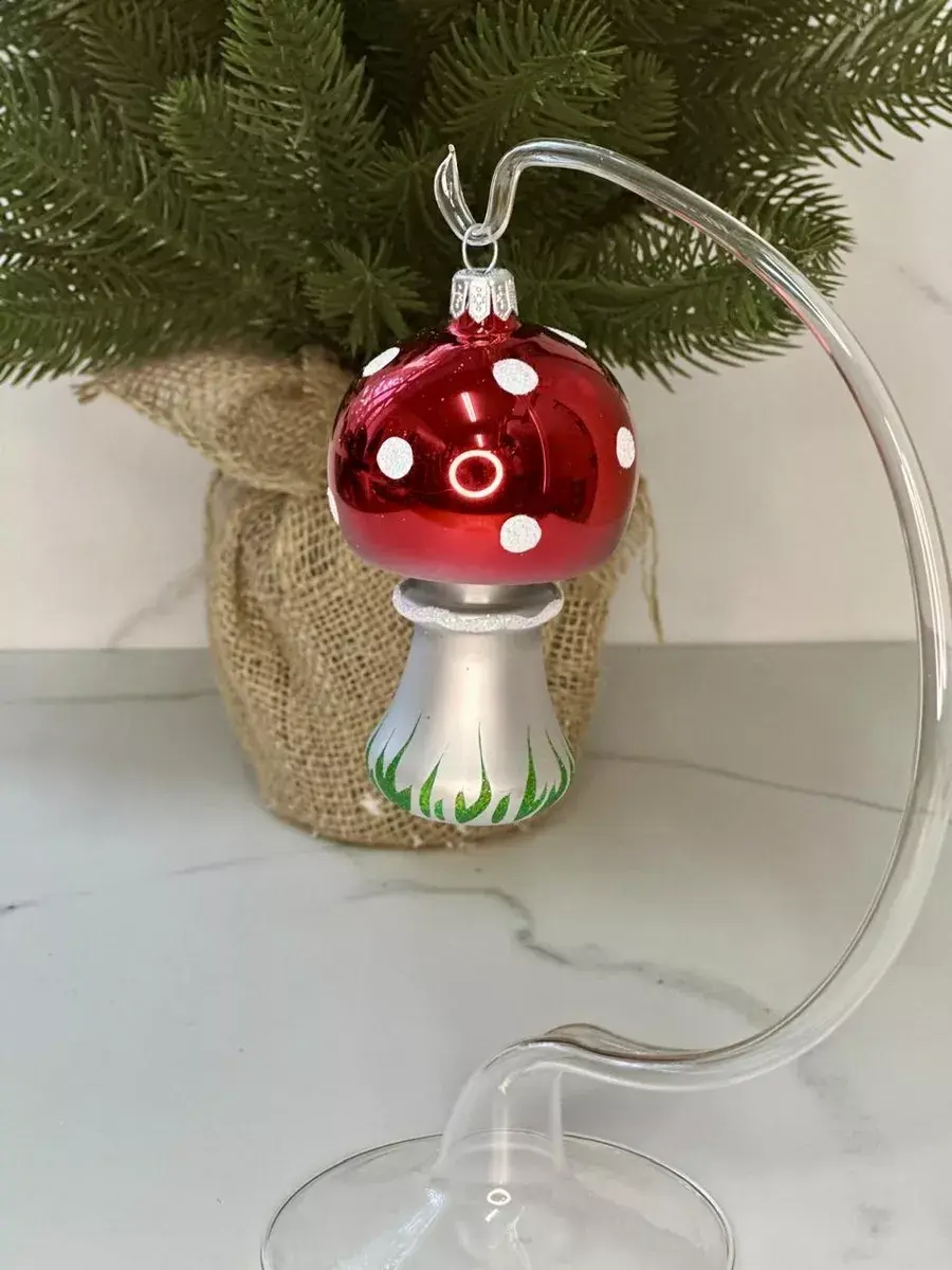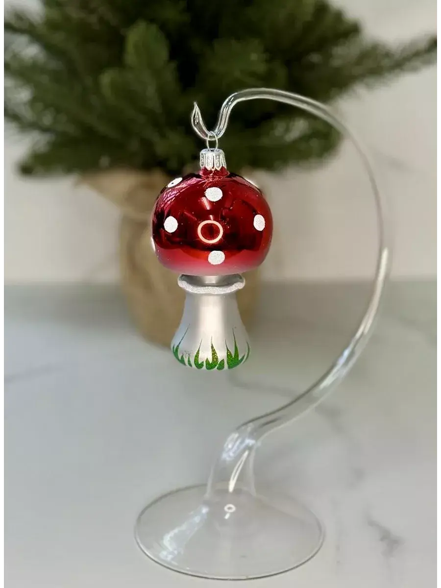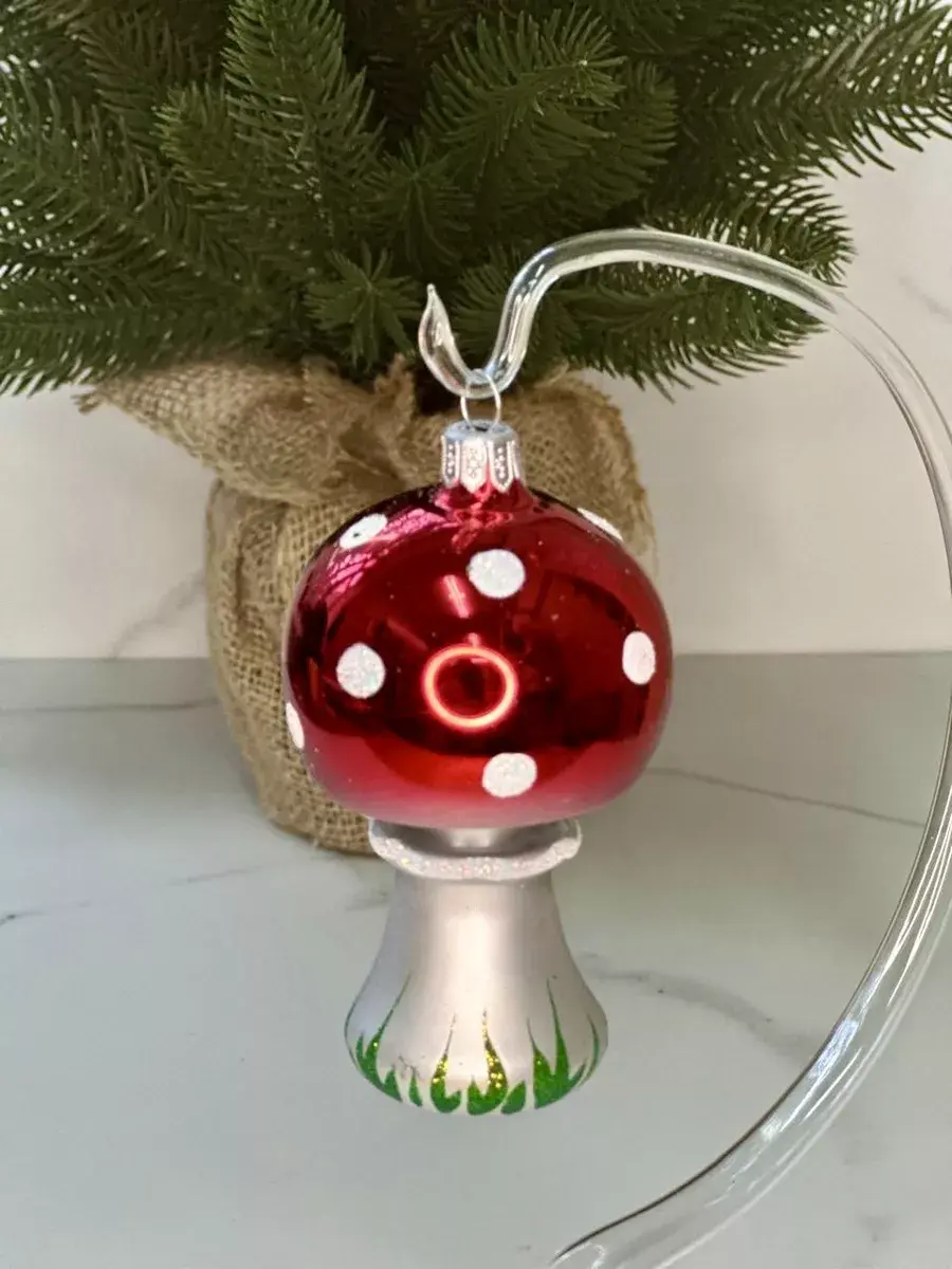Елочное украшение "Мухомор" высота 9 см-Клинская елочная игрушка. Оригинальные новогодние игрушки производства «Ёлочка» помогают наполнить каждый дом неповторимой таинственной атмосферой приближающегося Нового года и Рождества. На нашей страничке вы найдете стеклянные шары на елку, новогодний декор, символ года и елочные украшения от фабрики Елочка.