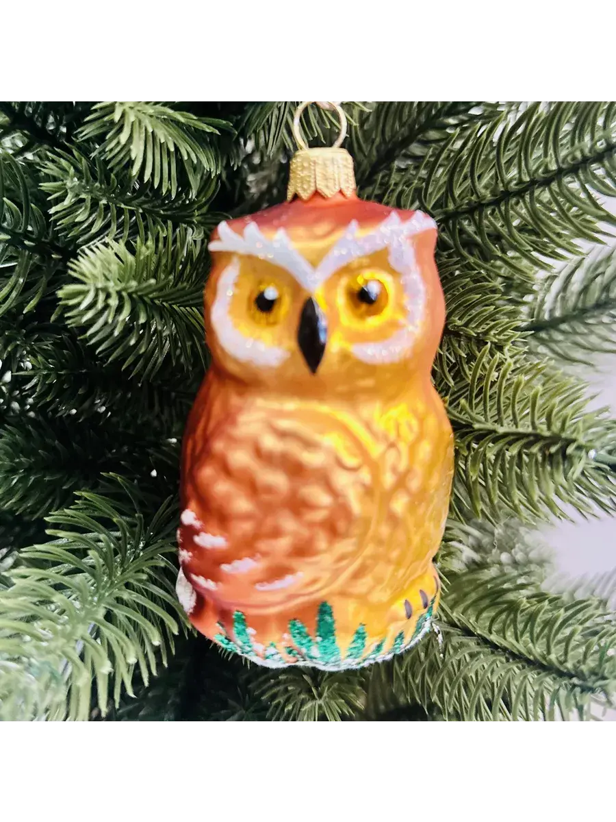 Елочная игрушка "Сова" из стекла ручной росписи 9см. высотой станет прекрасным подарком и украшением Вашего Новогоднего торжества.