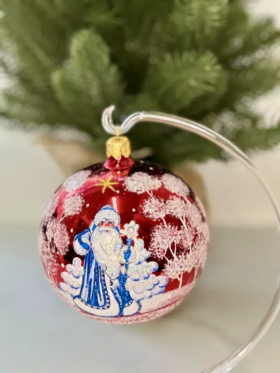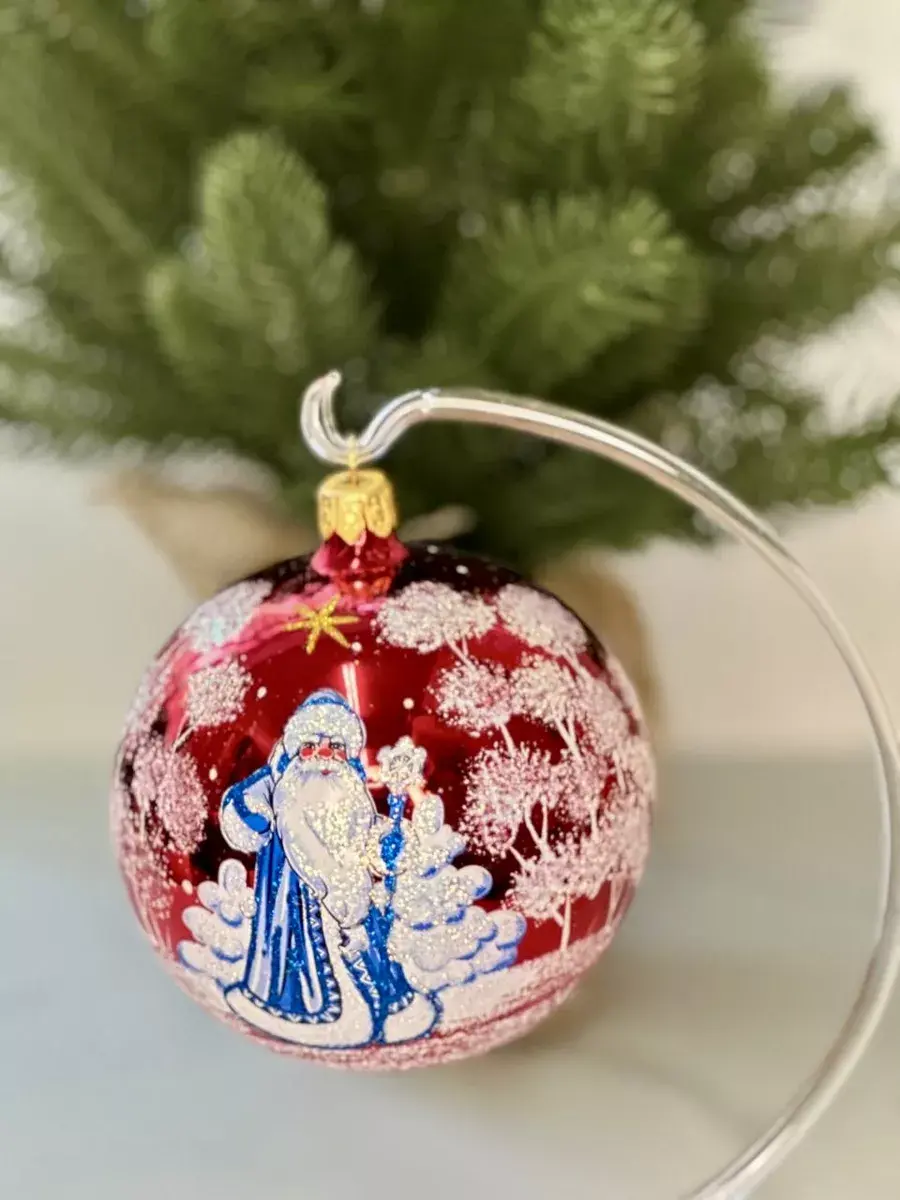 Елочное украшение из стекла.Шар "Дед мороз"Ручная роспись.В индивидуальной подарочной упаковке.Диаметр 95 мм.примечание:Изделие выполнено в технике "деколь" - на специальным образом термически обработанную основу наносится ручная роспись.По этой же технологии часто изготавливаются изделия из фарфора, стекла, керамики.Благодаря технике "деколь" рисунок на изделии крепко держится, не осыпается, не трескается и не стирается от времени.Клинская фабрика «Ёлочка» — старейшее российское предприятие по производству стеклянных ёлочных игрушек, которое ведет свою историю с 1848 года!Оригинальные новогодние игрушки производства фабрики «Ёлочка» - это отличный подарок близким, друзьям, знакомым, коллегам по работе и родственникам.Создать свою неповторимую коллекцию елочных игрушек, которая будем долгие годы украшать семейные праздники – это красивое хобби и добрая традиция для многих поколений.В ассортименте фабрики богатое разнообразие игрушек: шары; гирлянды; бусы; формовые игрушки; наборы; верхушки для елки.Отдельный тренд фабрики – стеклянные елочные игрушки с символикой СССР. Разработанные по советским эскизам и выполненные в лучших традициях клинских мастеров.Игрушки от «Елочки» - это лучший подарок, который будет храниться годами и передаваться из поколения в поколение. А также – способ порадовать себя и окунуться в детство, с его атмосферой близкого чуда и волшебства.