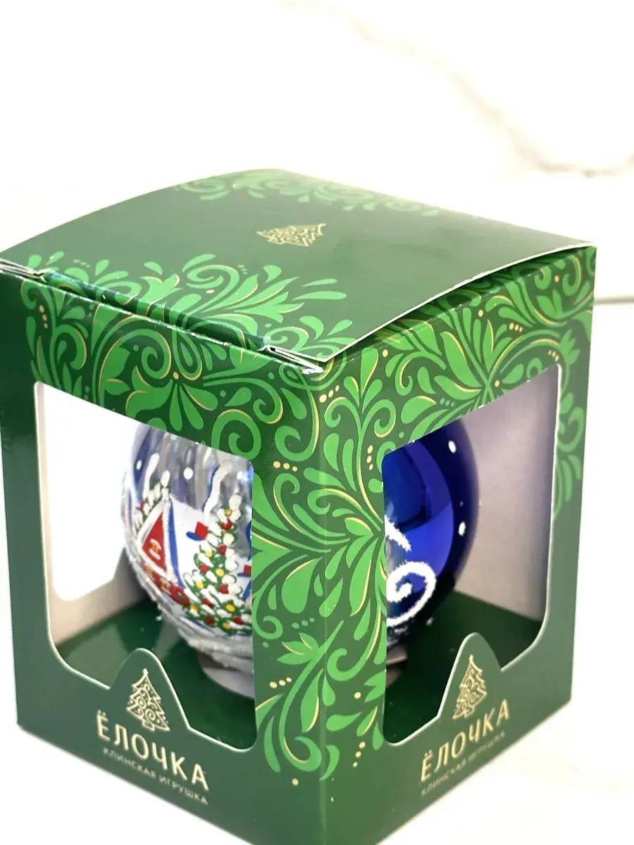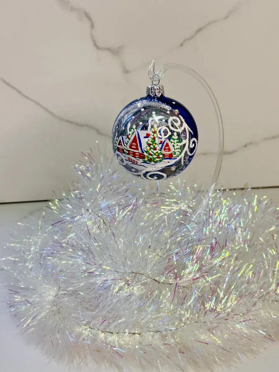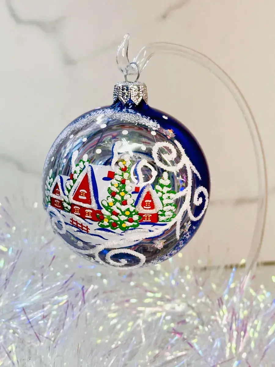Стеклянный елочный шар диаметром 75 мм ручной работы. Данное елочное украшение будет прекрасным подарком и будет самым красивым украшением для вашей елки.