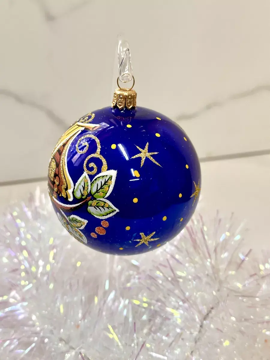 Елочная игрушка стеклянный шар "Фантазия" из стекла ручной росписи 80 мм высотой станет прекрасным подарком и украшением Вашего Новогоднего торжества.