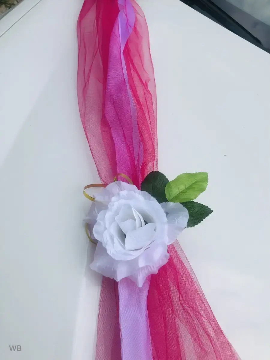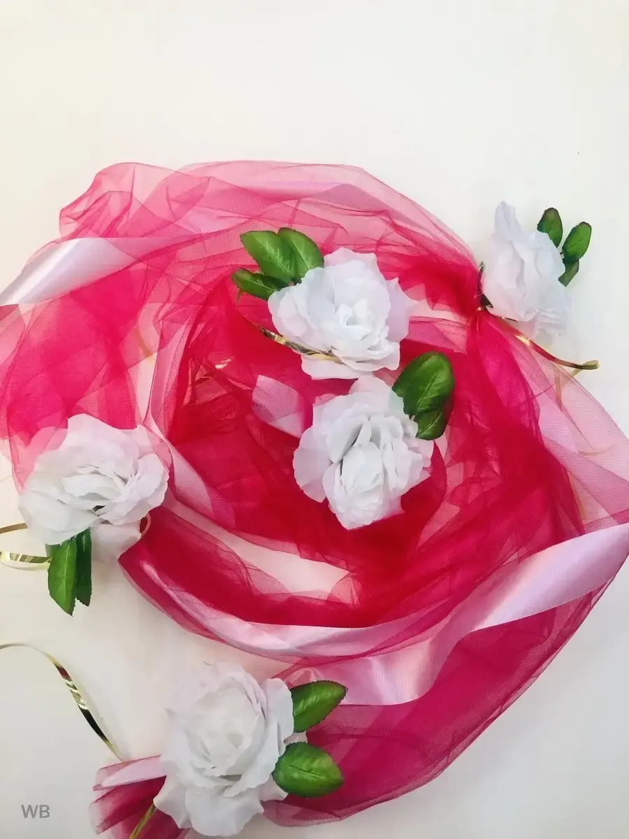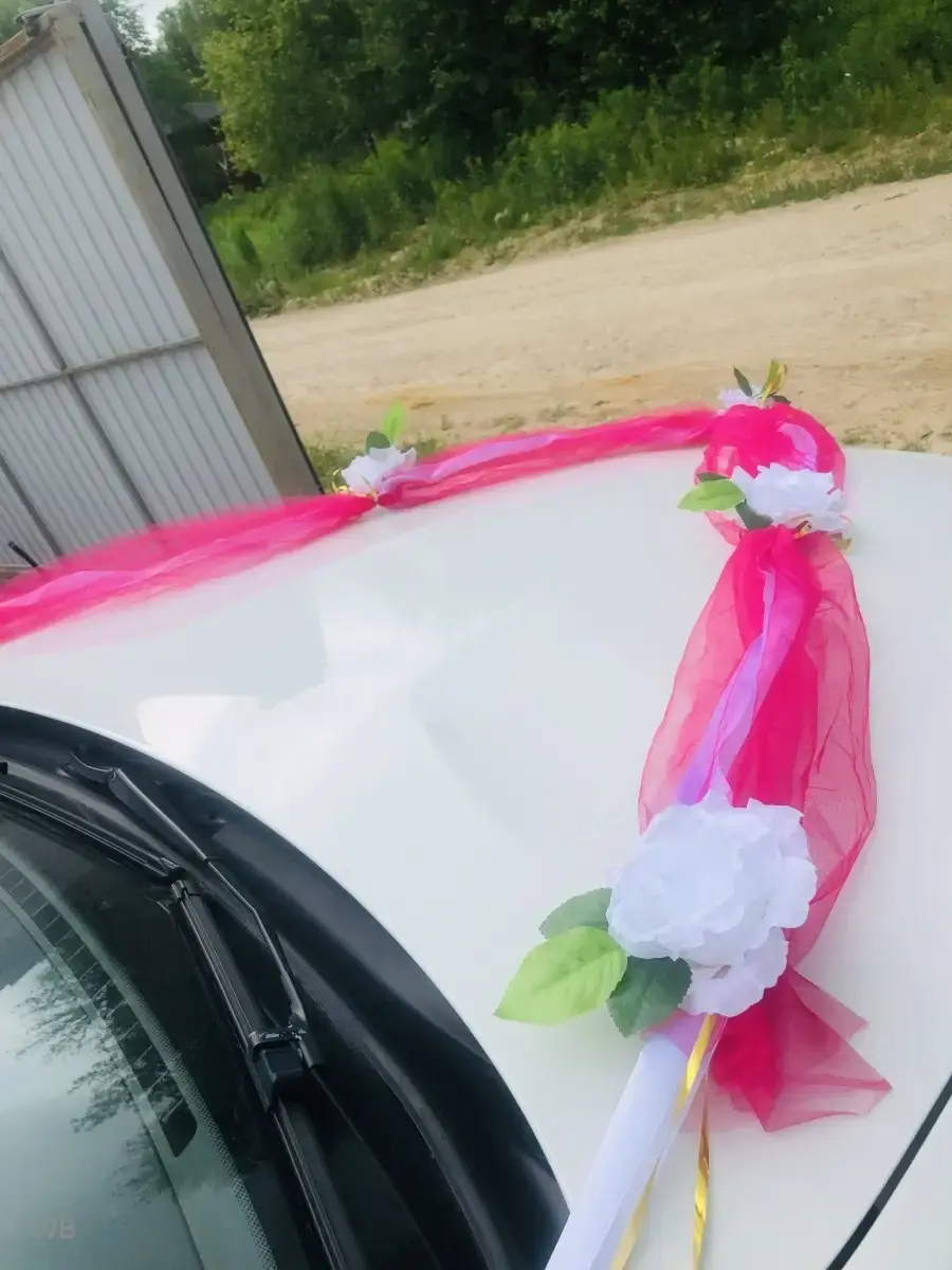 Ленты на свадебные машины необходимый атрибут для украшения кортежа молодоженов и гостей.Длина ленты 3 метра. Объемная лента для оформления свадебного авто,как главных,так и гостевых. Так же имеет широкое применение при оформлении лестничных пролетов,входной группыплощадки,при декоре и оформлении торжевст. Состав- атлас,фатин,искусственные цветы.