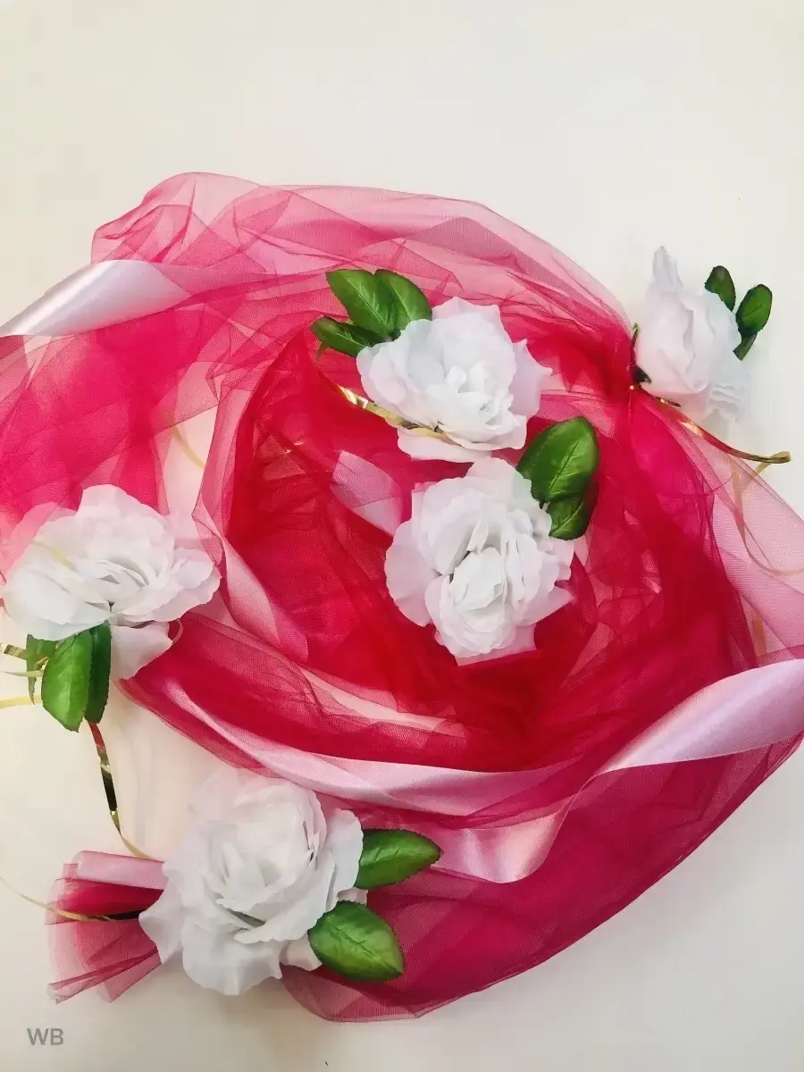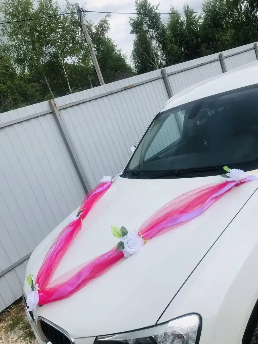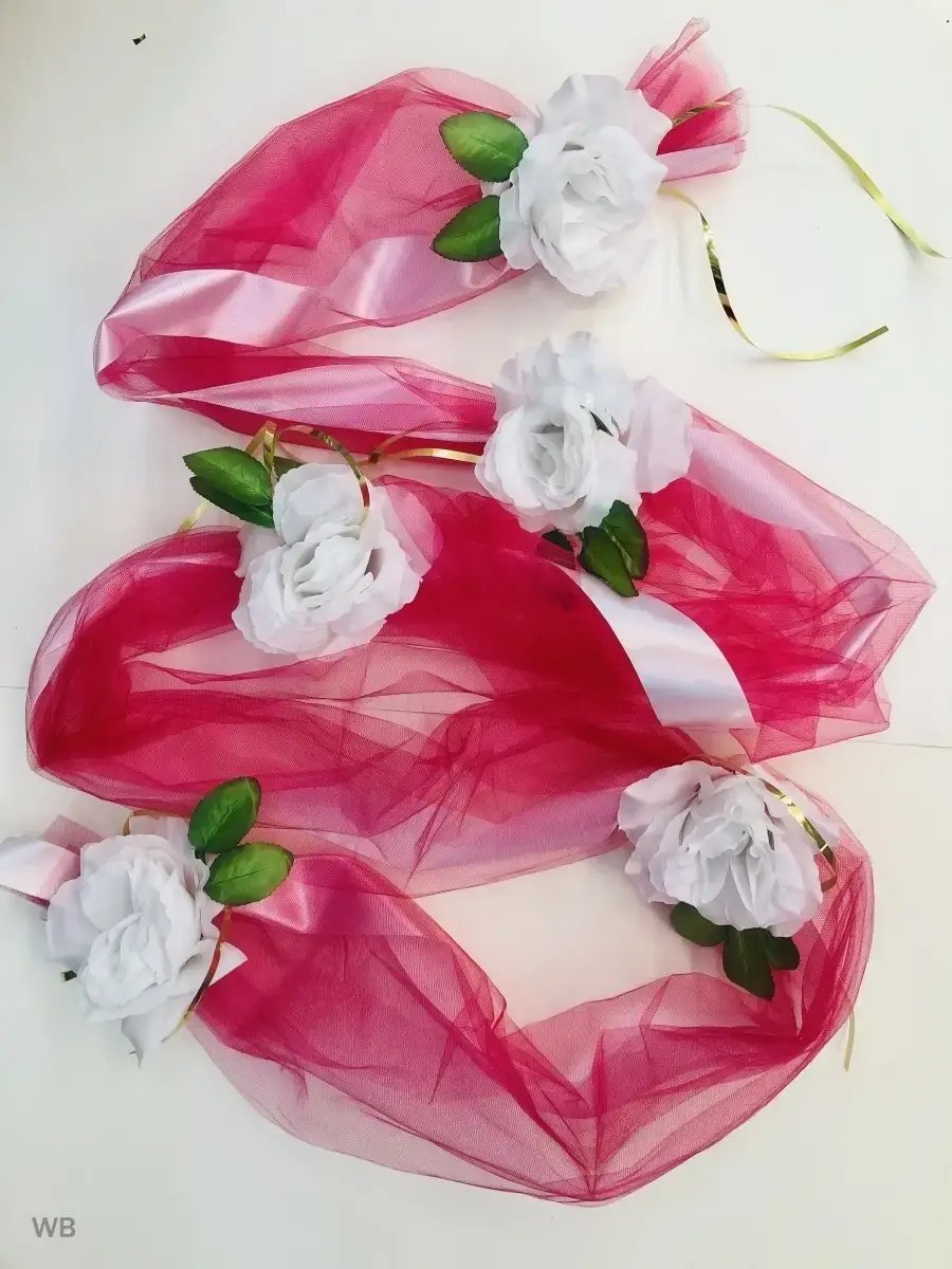 Ленты на свадебные машины необходимый атрибут для украшения кортежа молодоженов и гостей.Длина ленты 3 метра. Объемная лента для оформления свадебного авто,как главных,так и гостевых. Так же имеет широкое применение при оформлении лестничных пролетов,входной группыплощадки,при декоре и оформлении торжевст. Состав- атлас,фатин,искусственные цветы.
