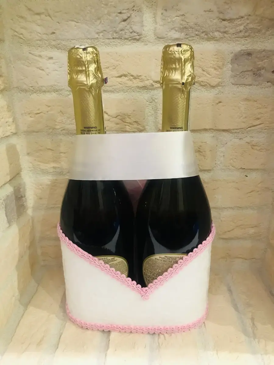 Не упустите возможность добавить неповторимый шарм и элегантность вашей свадьбе.Закажите украшение на шампанское прямо сейчас и получите незабываемые моменты радости и веселья. Наши украшения - это идеальный выбор для тех, кто ценит красоту и стиль, и хочет сделать свой праздник по-настоящему незабываемым.Украшение шампанского выполнено из плотной дизайнерской бумаги белого цвета, декорировано белым кружевом и атласными лентами, а также белой латексной розочкой. В комплект входит бант из белоснежной атласной ленты, который легко крепится на горлышках. Украсить бутылки очень просто, достаточно надеть на бутылки с шампанским украшение и выставить бутылки рядом с бокалами на стол молодых!