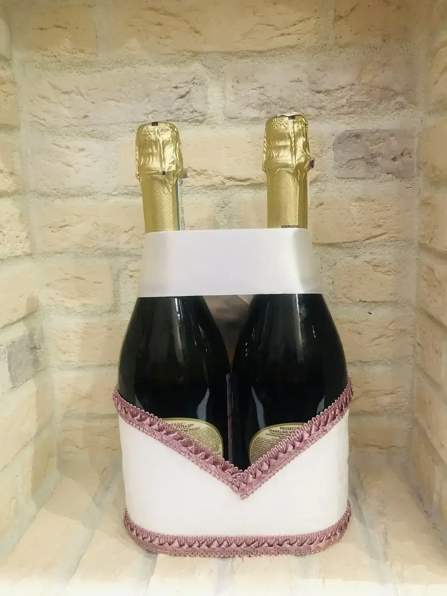Не упустите возможность добавить неповторимый шарм и элегантность вашей свадьбе.Закажите украшение на шампанское прямо сейчас и получите незабываемые моменты радости и веселья. Наши украшения - это идеальный выбор для тех, кто ценит красоту и стиль, и хочет сделать свой праздник по-настоящему незабываемым.Украшение шампанского выполнено из плотной дизайнерской бумаги белого цвета, декорировано белым кружевом и атласными лентами, а также белой латексной розочкой. В комплект входит бант из белоснежной атласной ленты, который легко крепится на горлышках. Украсить бутылки очень просто, достаточно надеть на бутылки с шампанским украшение и выставить бутылки рядом с бокалами на стол молодых!